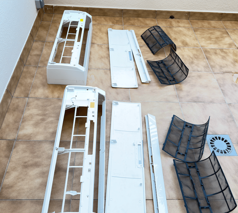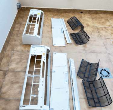 Filtros, bandejas y componentes internos para eliminar polvo, bacterias y malos olores.